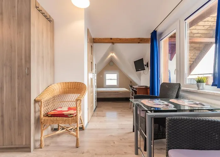 Kąty Rybackieでの休暇を楽しむには、Vistula Lagoon and Vistula Spitから1.8kmの距離で、Vistula Lagoon Museumから歩いて8分の客室6室の"Morskie Katy" - Kąty Rybackieアパートがあります。 テラス付きのアパートはMuzeum Zalewu Wislanego. Oddzial Narodowego Muzeum Morskiego少し離れたに位置しています。