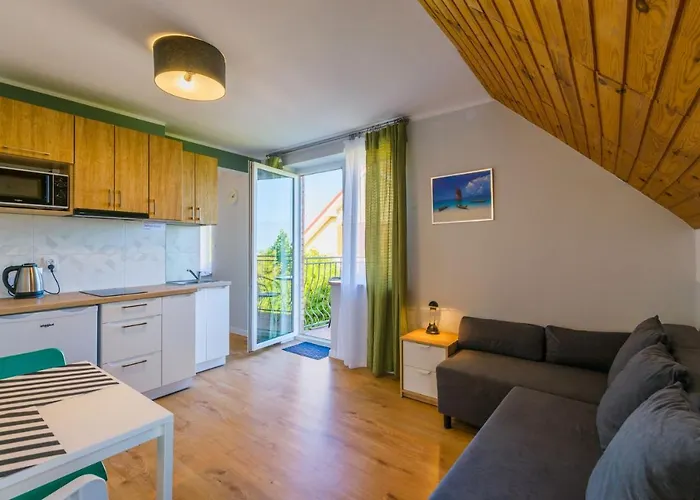 キチネットで食事を楽しめます。 "Morskie Katy" - Katy RybackieアパートはKaty Rybackie Portバス停から 200メートルくらいです。